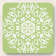 This white mandala sits on a bright, yellowish green background. The color is natural and optimistic. Part of the Pras Mandala Collection.