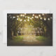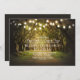 Die Lichterketten, die sich auf dem Weg zu rustikalen Hochzeiten befinden, laden zum Hochzeitsfeiern im Freien ein, inspiriert von alten Eichen, die von spanischem Moos bedeckt sind. Südländische Einladung perfekt für Träumer, die eine Hochzeit mit Bäumen und Lichterketten planen.