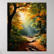 Die sanften Sonnenstrahlen filtern durch die hohen Bäume und warmen Glanz auf dem Waldboden. Ein lebendiger Farbenpalast - tiefe Grüntöne, erdbraune und strahlende Gelbtöne - entfaltet sich in dieser Naturwunder-Szene, in der die friedliche Waldenergie auf den Zauber der Sonnenumarmung trifft.