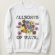 Das Sweatshirt zeigt eine originelle Marker-Illustration einer Handvoll pastellfarbener Lakritze, die Leckereien anlockt, mit ALLSORTS OF WAYS... in einem lustigen Schriftart. Ideal für Ihren Lieblings-Feinschmecker!