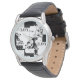 Uhr, Vintage Männeruhr mit schwarzem Lederarmband