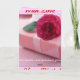 Worte "Mit Liebe auf Ihrem Geburtstag" Hübsche rote Blume auf einem verpackten Geschenk. Ein schönes Design für Ihre Geburtstagsgrüße.
