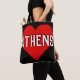 Damentasche. Grosses rotes Herz und die Stadt Athen. Cooles Taschendesign.