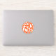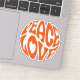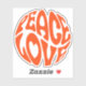 Circular Aufkleber mit den Worten Peace & Liebe in orange auf weißem Hintergrund. Herzform im Buchstaben O in Liebe.