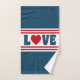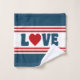 Liebe mit Herzform im nautischen Stil auf blau, rot und weiß gestreiften Hintergrund