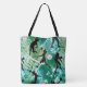 Grosses, rundum bedrucktes, gebürstetes Polyester-Totbeutel mit beidseitigem Bild von Silhouetten von Volleyballspielern, Volleyballnetzen und Volleybällen auf künstlerisch blauem, grünem und gelbem Hintergrund. Entsprechende natürliche 100% Baumwollteppichbeutel. Sehen Sie sich die gesamte Tagetotbeutel-Sammlung des Vaters in den SPEZIELLEN TOUCHS an| Gastgeschenken