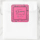 Liebe blüht in rosa und schwarz blumengeschmücktem quadratischer aufkleber
