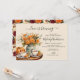 Cette charmante invitation présente un plan aquarelle de tasses de café sur une table avec des fleurs de maman dans un vase et un citrouille. Les mots "L'amour est brasser" sont écrits dans une police de caractères moderne. C'est la façon idéale d'invitation vos amis et votre famille pour célébrer la future mariée et son amour du café.