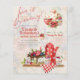 Schöne Vintage Retro Rot und Weiß Punkt themed Einladungen. Bearbeitung für alle Veranstaltungen, einschließlich Geburtstag, Baby oder Brautparty, Ruhestand, Muttertag oder mehr.