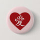 Ein Knopf mit dem japanischen Kanji für Liebe.