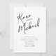Elegante handgeschriebene Schrift- und Pinselstrich-Akzente werden verwendet, um die Teile dieser schönen, modernen Hochzeitssuite zu kreieren. Die Hochzeitskarte "Einladung", die hier gezeigt wird, enthält auch Ihr Foto und eine optionale Nachricht auf der Rückseite. Fügen Sie einfach Ihr eigenes Bild, Ihre Namen und Ihre Ereignisdetails mithilfe der bereitgestellten Vorlage hinzu. Suchen Sie ID940 um weitere Teile und Farboptionen für dieses Set zu sehen.