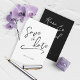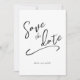 Elegante handgeschriebene Schrift- und Pinselstrich-Akzente werden verwendet, um die Teile dieser schönen, modernen Hochzeitssuite zu kreieren. Die Hochzeitskarte "Save the Date", die hier gezeigt wird, enthält auch einen schwarzen Hintergrund und Ihre Hochzeitswebsite-Adresse auf der Rückseite. Fügen Sie einfach Ihre eigenen Namen und Details mit der bereitgestellten Vorlage hinzu. Suchen Sie ID940 um weitere Teile und Farboptionen für dieses Set zu sehen.