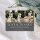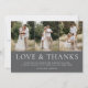 Teilen Sie Ihre Dankbarkeit mit unserer Liebe und Dank 3-Foto Hochzeit Dankeschön Karte. Dieses Design bietet Platz für drei Ihrer Lieblings-Hochzeitsfeier-Fotos, schön arrangiert mit eleganter "Liebe & Dank"-Typografie. Personalisieren Sie es mit einer herzlichen Danksagung, um es zu einem einzigartigen Zuhause für Ihre Gäste zu machen. Diese Karte ist perfekt für Paare, die gewollt haben, mehr Erinnerungen aus ihrem besonderen Tag zu präsentieren. Sie kombiniert Stil und Stimmung und schafft so einen bleibenden Eindruck. Es ist der ideale Weg, Wertschätzung auszudrücken und gleichzeitig die Freude Ihres Hochzeitstages zu erleben.