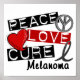Um dieses Design für mehr als 70 weitere Projekte zu sehen, besuchen Sie bitte unsere Melanoma Sektion an der Peace Liebe Cure Melanoma, eine umfangreiche Boutique für das Melanoma Awareness and Support Design. Teilen Sie diese inspirierend Stimmung mit unseren Peace Liebe Cure Melanoma T - Shirt, Produkten und Geschenken mit angesagtem Label Text, einem Friedenssymbol, Herz und schwarzem Melanom-Stützband. Als Überlebende und Krieger, Ehepartner und Unterstützer des Bewusstseins für Krebs und Krankheiten leisten wir gerne regelmäßig Beiträge an die Wohltätigkeiten in Medizin, Tier und Darfur und laden Sie ein, uns zuerst für alle Ihre Melanom-Bewusstseinsbildung und Unterstützungsbedürfnisse zu denken.
