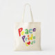 Zeigen Sie Ihren Stolz auf diese lustige und stilvolle Tasche mit einer niedlichen Schrift von "Peace Pride Liebe" in Regenbogenfarben.