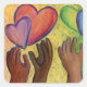 Inspirationskunst mit bunten Regenbogenherzen, die von verschiedenen Händen bis zur Liebe reichen. Die Kunst ist eine Hommage an den heilenden Power des Geben und Empfangen von Liebe in unserem Leben. Die Herz- und Handbilder werden mit gemischten Medien, einschließlich Pastellfarben, gezeichnet und bemalt.