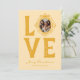 Einfache, gelbe Weihnachtskarte mit dem Wort "Liebe", wobei Ihr hochgeschätztes Foto das "O" ersetzt. Set in einem skizzierten Bilderrahmen, erweitern Sie Ihre Liebe und Frohe Festtage, während Sie die Karte mit "Frohe Weihnachten und Ihren Namen" umarmen. Es bietet Nostalgie und Freude und ist das perfekte Weihnachtsmemento für Ihre Lieben.