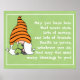 Sweet Poster bietet irisches Girl-Gnome mit Kleeblättern und Gold/grün texturierten Hintergrund : Irish Blessing liest: Möge man Liebe, die nie endet, viel Geld und viele Freunde haben. Gesundheit sei deine, was immer du tust, und möge Gott dir viele Segnungen schicken!