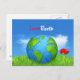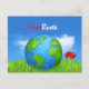 Schöne Earth Day Celebration Postkarte mit der Erdbilderdarstellung auf grünem Gras mit roter Blume und Himmel mit Wolke im Hintergrund