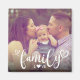 Ein süßes Foto Magnet mit einem hübschen Schriftart in Weiß über einem Foto mit dem Text "Family Liebe". Sie können das Foto aus dem Menü "Personalisieren" ändern. Eine schöne Art, an die Gemütlichkeit und Wärme der Familie erinnert zu werden.