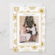 Liebe & Freude Weihnachten Foto Moderne Gold Snowflakes Holiday Cards Weihnachtskarten Weihnachtskarten auf einem eleganten, modernen weißen und goldenen Winterschneeflockenmuster Hintergrund mit dem Text "Liebe & Freude" in moderner Goldskripttypografie. Ideal für Familie und Freunde zu Weihnachten und Feiertagen. Erstellt von Evco Studio www.zazzle.com/store/evcostudio