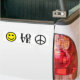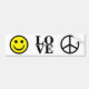 Ein schwarzes Friedenszeichen mit einem schlichten Gesicht und Pop Art LIEBE.