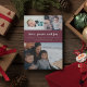 Burgund "Liebe Ruhe und Freude" drei familienfreundliche Foto-Design-Grußkarte mit der Botschaft - wünschen Sie einen Urlaub voll von dem, was am wichtigsten ist. Angepasst mit Ihren Namen und drei Ihrer Lieblings-Fotos aus dem Jahr. Diese Weihnachtskarte des Fotos kehrt zu einem koordinierenden Heiligbeerdesign auf der Rückseite zurück.