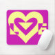 Ein grafisches Logo-Design, maßgeschneidert. LIEBE in Gelb auf lila.