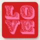 LIEBE quadratischer Untersetzer. Die Hintergrundfarbe kann angepasst werden.