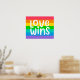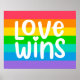 Dieses Kunstwerk zeigt einen bunten Regenbogen mit den Worten Liebe gewinnt.
