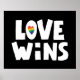 Dieses Design zeigt die Phrase Liebe gewinnt mit einem bunten Regenbogenherz.