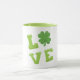 Diese hübsche grüne St Patrick's Day Zazzle Tasse zeichnet sich durch "Liebe" in Blockbuchstaben aus. Perfekt für den St. Patrick's Day, kaufen Sie noch heute Ihre! Graphic created by: Prettygrafik design (https://www.etsy.com/shop/Prettygrafikdesign)