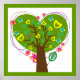 Liebe des Herzens, ein spezielles grünes Poster, das einen Baum in Herzform mit kleinen Gelbherzen, hellrosa Blume und Blätter auf weißem Hintergrund mit einer grünen Grenze aufweist. Perfektes Geschenk nicht nur für den Valentinstag.