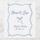 Whimsical ruft zur Liebe Hand gezeichnete Bow Französisch Blue Wine Label mit handschriftlich Stil Schriftart. Ideal für Hochzeiten und Verlobungen.