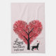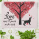 Liebe hat 4 Tatzen und einen SchwanzValentineentwurf für Hundeliebhaber. Das Zeigen eines Baums voll des Herzens formte Blätter in den Rottönen und in den Rosa und einen entzückenden Welpenhund auf einem blassen - rosa Hintergrund. Verfügbar auf zusätzlichen Waren an meinem Zazzle Geschäft www.DoggyStyleDesignStudio.com