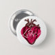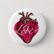 Herztaste der Liebe. Vintager Holzschnitt. Rotes Herz mit weißer LIEBE oben. Schönes Accessoire, um die Jacke zu kleiden. Macht für ein lustiges Gastgeschenk, Valentine Geschenk. Hört auf euren Ärmel, oder jean Jacke. Liebe und Küsse.