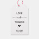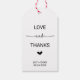 Diese Liebe Herzen Liebe und dank Gunst Tags sind perfekt für eine rustikale Hochzeit. Das romantische minimalistische Design besticht durch einen schlichten, süßen Schriftart der Herzkalligraphie. Personalisieren Sie die Etiketten mit Ihren Namen und dem Datum.
