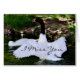 Ein Schwan mit seinen Federn weit nach oben hin zu einem anderen Schwan. Produkte, Karte, Postkarten, Aufkleber für jede Gelegenheit.
