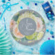 Die Wörter "Liebe in Blüte" und Ihre Brautparty-Details sind mit wunderschönen Aquarellen von weißen und grünen Hydrangeas mit rosa und cremefarbenen Rose, Gänseblüten, kleinen Blüten und Blätter auf diesem Papier Teller mit einem staubigen blauen Hintergrund oder jeder Farbe, die Sie wählen. PASSENDE Artikel in unserer Sammlung.