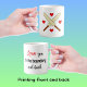 Tasse eines Cricket-Liebhabers für den Valentinstag oder einen romantischen Anlass. Auf der einen Seite lautet der Text "Liebe dich zur Grenze und zurück". Auf der anderen Seite ist ein einfaches zeichn von gekreuzten Cricket-Fledermäusen mit vier roten Herzen.