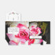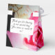 Das Design zeichnet sich durch das nah-up Bild einer rosa Rose in voller Blüte als Hintergrund für die Namen von Braut und Bräutigam und das Hochzeitstag aus, das in einem schönen silberfarbenen Schriftart vorne gezeigt wird. Eine weiße rechteckige Form hilft, Text deutlich zu erkennen. Die Frontklappe zeigt oben das Bild eines silberfarbenen Kreuzes. Die Worte "Danke!" erscheinen auf beiden Seiten zweier miteinander verflochtener Rose, die in der Mitte angezeigt werden. Zurück zeigt Ihre persönliche Dankesbotschaft in demselben eleganten Schriftart.