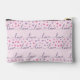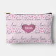 Ein perfektes Geschenk für jemanden am Valentinstag. Das Wort LIEBE auf einem rosafarbenen Hintergrund von schwebenden rosa und lila Herzen. Ein großes rosa Herz kann zur Personalisierung verwendet werden