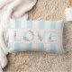 Ein wunderschönes Blumenalphabet Zauber das Wort "LIEBE", das mit Bouquets von Aquarellfarben-Rose in Pfirsich und Rosa geschmückt ist. In diesem süßen pastellblauen und weißen Streifen lumbarnen Kissen Design. Es macht einen hübschen Zuhause-Akzent und ist auch eine nette Geschenkidee für Hochzeiten, Valentinstag, Verlobungen, Jahrestage oder sogar die Geburt eines neuen Babys.
