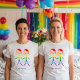 Dieses Shirt zeichnet sich durch ein wunderschönes und elegantes Design aus, um Ihre Hochzeitsfeier mit einer zusammenhängenden und sinnvollen Touch zu verbinden. Die Grafik zeigt zwei Frauen, in Form von eleganten Strichmännchen, die Händchen halten. Die Figuren sind in einem wunderschönen Regenbogen gefärbt und symbolisieren Liebe und Diversity. Dieses Shirt ist eine wunderbare Möglichkeit, Ihre Liebe mit jedem Detail Ihres besonderen Tages zu feiern.