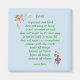 Liebe ist geduldig und freundlich, neidet nicht oder prahlt nicht, ist nicht arrogant oder unhöflich, besteht nicht auf seinem eigenen Weg, ist nicht reizbar oder ärgerlich, freut sich nicht über Fehlverhalten, freut sich über die Wahrheit, trägt alles, glaubt alles, hofft alles, beherrscht alles, Liebe versage nie. 1 Korinther 13