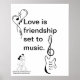 Feiern Sie mit diesem einzigartigen Kunstdruck die Harmonie von Liebe und Freundschaft, Liebe ist Set der Freundschaft mit Musik, von Michael Carter. Mit einem minimalistischen Design mit musikalischen Noten, die ein Herz und eine Gitarre bilden, und einem eleganten Paar, das tanzt, vereint dieses Stück wunderbar die Vorstellung, dass wahre Liebe auf der Grundlage von Freundschaft aufgebaut ist. Der Satz "Liebe ist Freundschaft Set zu Musik" hebt die Freude, den Rhythmus und die Harmonie hervor, die Liebe in unser Leben bringt. Dieses Kunstwerk ist perfekt für Musikfreunde, Paare und alle, die die Verbindung zwischen Liebe und Freundschaft schätzen. Ideal für Jubiläen, Hochzeiten oder als nachdenkliches Geschenk an jemanden, der etwas Besonderes möchte, ist dieser Ausdruck eine schöne Ergänzung zu jeder Wohngestaltung.