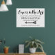Lässiges, schicke Begrüßungsschild / Poster zeigt das stilvolle Drehbuch "Liebe ist in der Luft" mit Pfeil-Design Akzent. Klassisches Schwarz-Weiß-Farbschema.