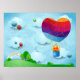 Fantasy Landschaft mit Ballon Herz geformt und Katze, Valentinenkarte.