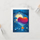 Fantasy Landschaft mit Ballon Herz geformt und Katze, Valentinenkarte.