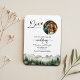Eine elegante Hochzeit Save the Date Magnet mit Aquarellgebirgen und Kiefernbäumen und 1 spezielles Foto, das Sie mit Ihren Details anpassen können.